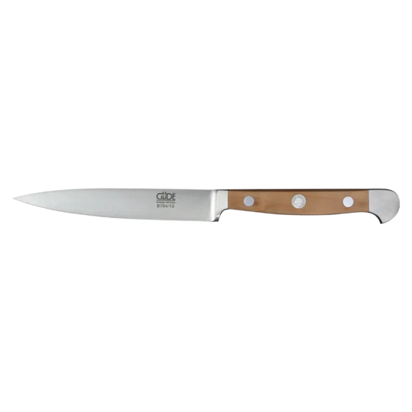Erhebe dein Kocherlebnis mit dem Tomatenmesser 13 cm Alpha Walnuss von Güde. Mit seiner sorgfältig gefertigten 13 cm Klinge aus Chrom-Vanadium-Molybdän-Stahl schneidet dieses Tomatenmesser mühelos sowohl harte als auch weiche Tomatenschalen. Der einzigartige Wellenschliff mit “scharfen Zähnen” verbessert die Schneidfähigkeit und Schnitthaltigkeit, sodass du jedes Mal perfekte, glatte Scheiben erhältst. Ob für Tomaten, Kuchen oder Brot, dieses vielseitige Messer ist eine unverzichtbare Ergänzung für jede Küche.
