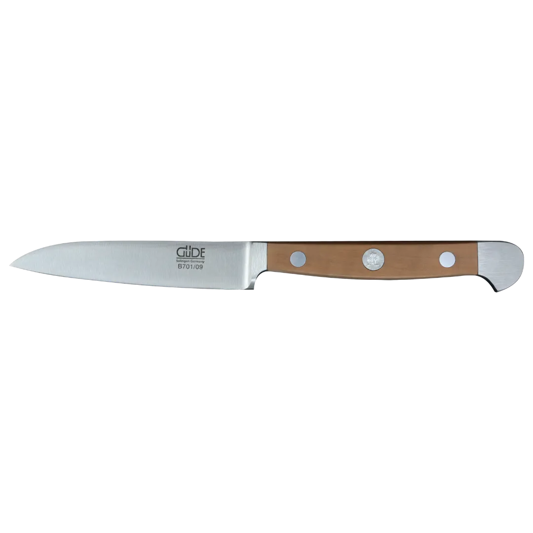 Das Güde Alpha Birne Gemüsemesser 9 cm ist dein unverzichtbares Werkzeug für den täglichen Einsatz in der Küche. Die scharfe, handgeschmiedete Klinge aus hochwertigem Chrom-Vanadium-Molybdän Messerstahl sorgt für präzises Schälen, Schneiden und Zerkleinern von Gemüse, Obst und Kräutern. Jeder Schnitt ist sauber und mühelos, sodass du effizient arbeiten kannst. Dank der robusten, eisgehärteten Klinge ist das Messer extrem langlebig und perfekt für den täglichen Gebrauch geeignet.