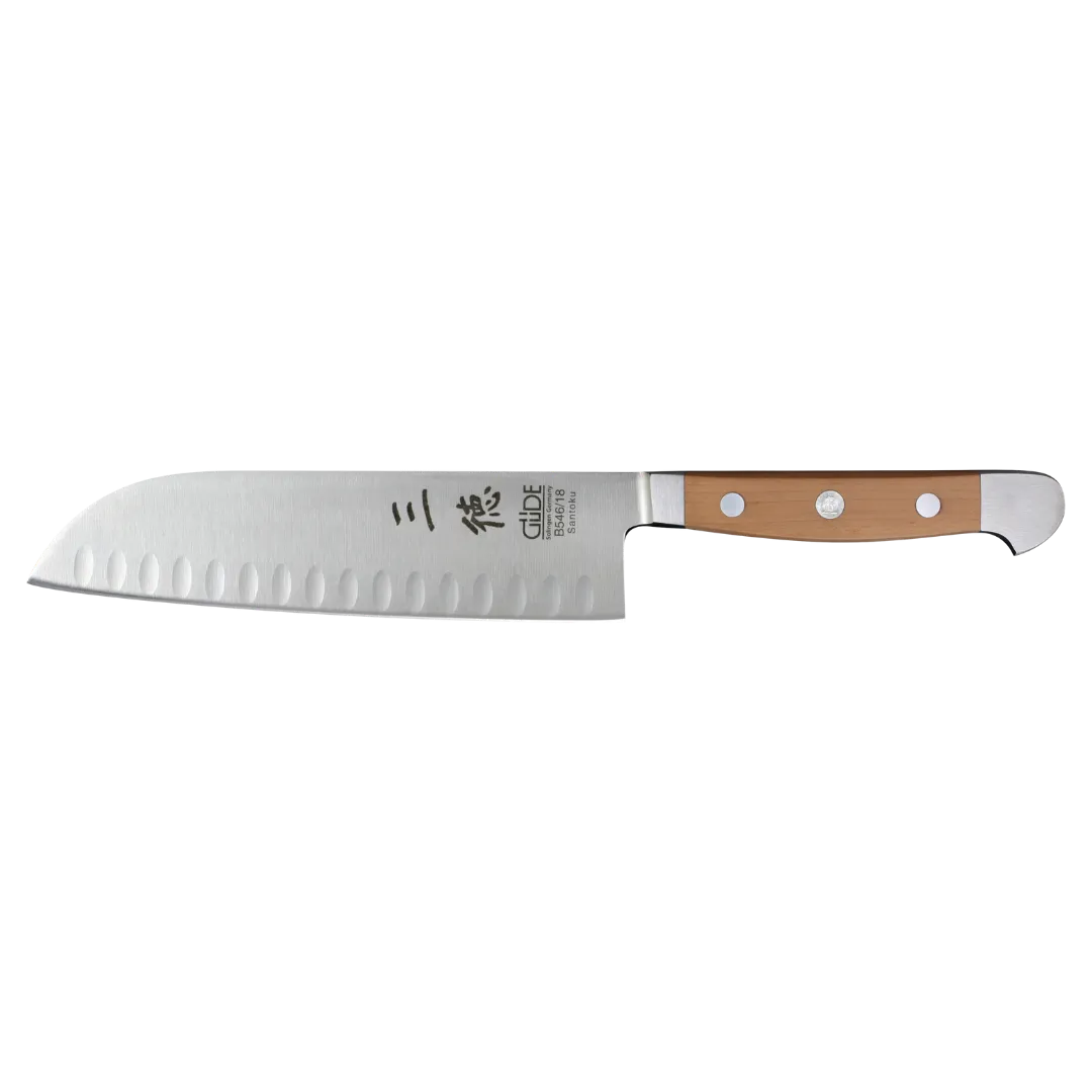 Das Alpha Birne Santoku Kochmesser 18 cm Kulle von Güde vereint traditionelle chinesische Klingenformen mit moderner Fertigungstechnik, um eine perfekte Balance zwischen Funktionalität und Ästhetik zu schaffen. Dieses Messer aus der Serie Alpha Birne ist die perfekte Wahl für vielseitige Schneidarbeiten in deiner Küche.