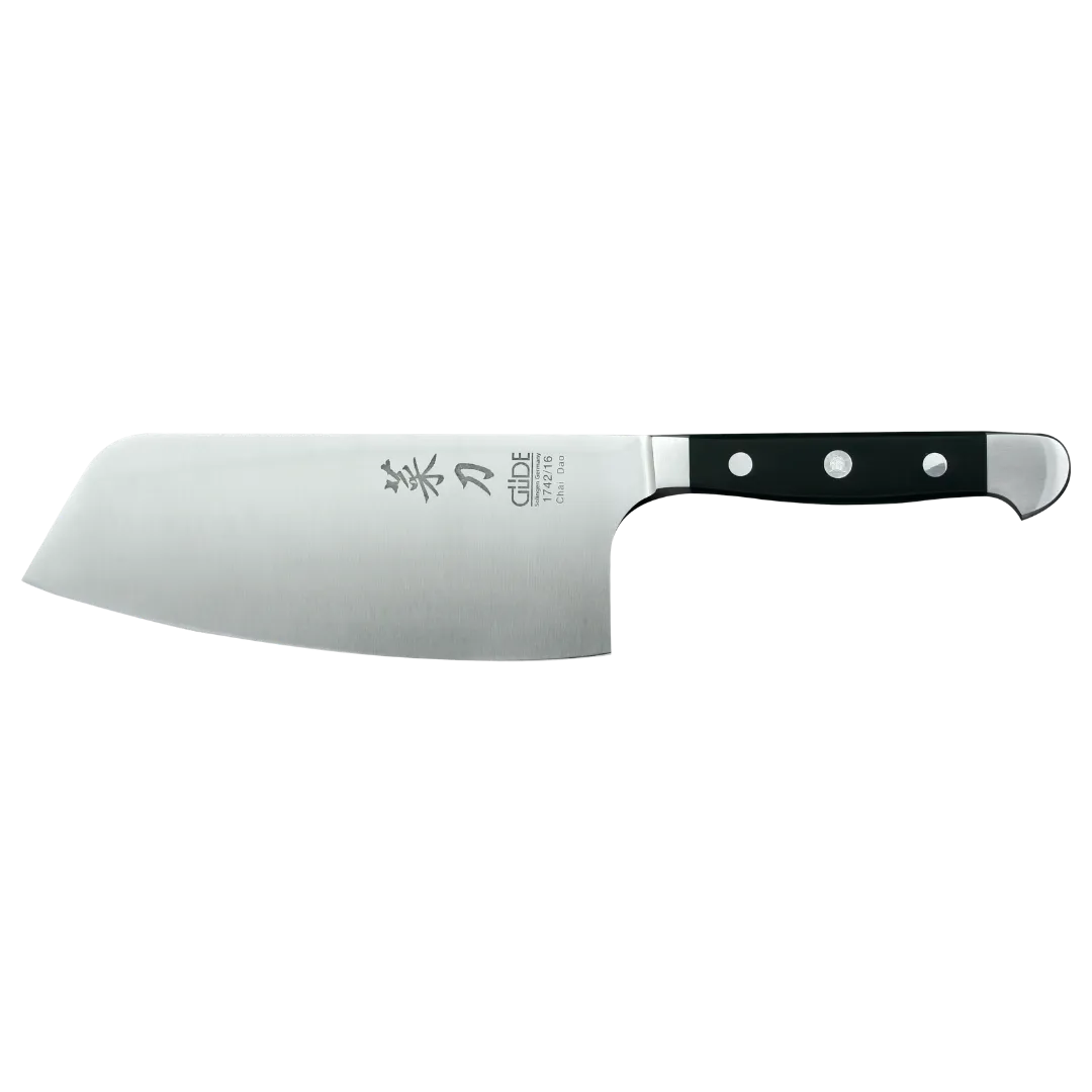 Entdecke das Chai Dao Kochmesser 16 cm von Güde aus der Serie Alpha – dein idealer Partner für die asiatische Küche! Mit seiner charakteristischen Hackbeilform ist dieses handgeschmiedete Messer perfekt zum Schneiden und Hacken von Fleisch, Fisch und Gemüse. Die 16 cm lange Klinge aus robustem Chrom-Vanadium-Molybdän-Messerstahl ist aus einem Stück gefertigt, eisgehärtet und handgeschärft, was außergewöhnliche Schärfe und Langlebigkeit garantiert.
