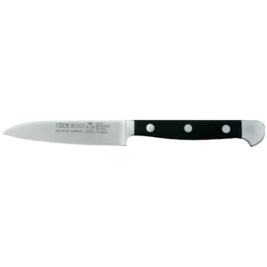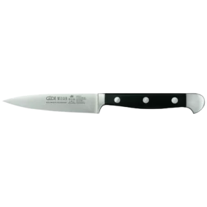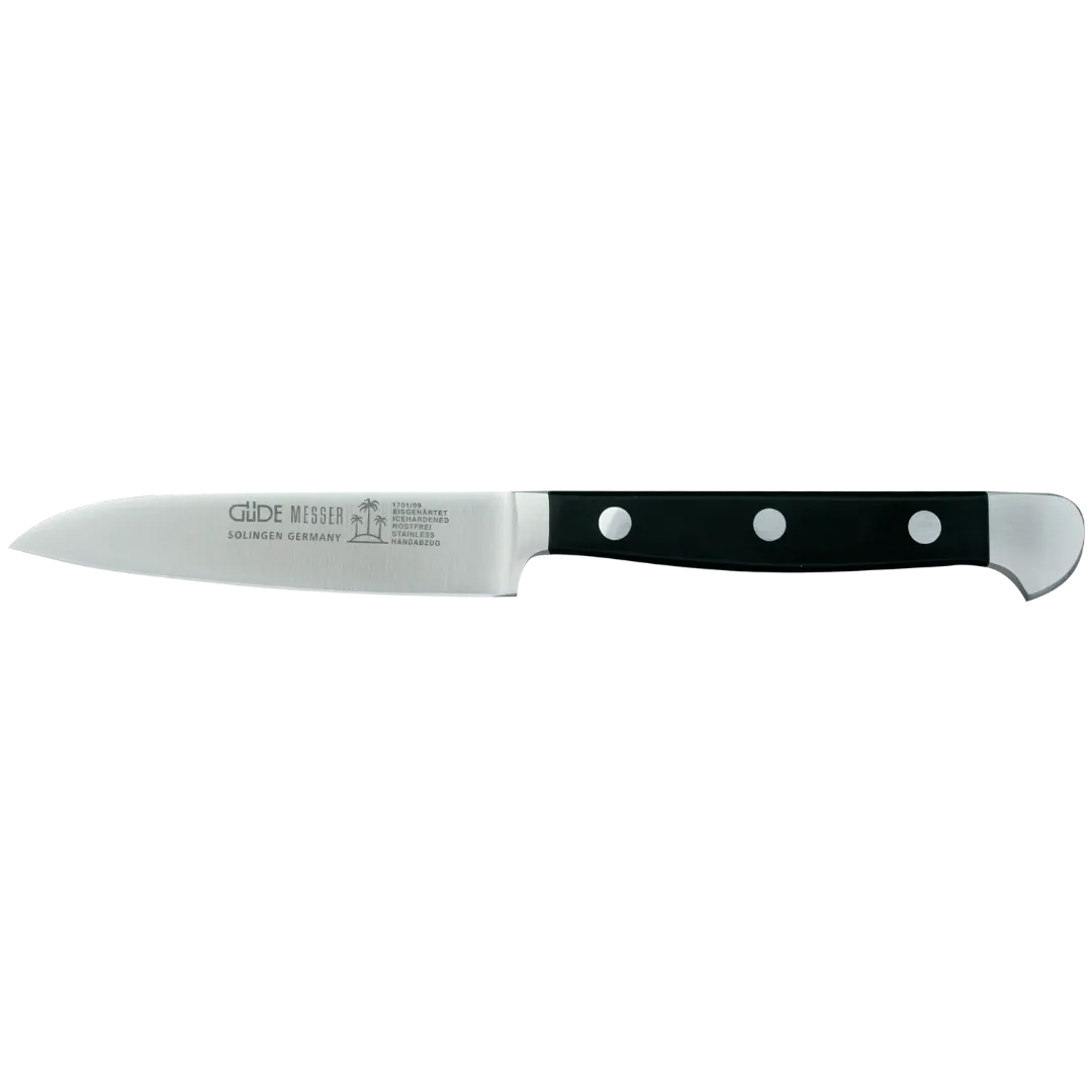 Das Alpha Gemüsemesser 9 cm von Güde ist der perfekte Partner für müheloses und präzises Schneiden von Gemüse. Die geschmiedete Klinge aus hochwertigem Chrom-Vanadium-Molybdän-Stahl überzeugt mit einer Klingenhärte von 56 HRC und außergewöhnlicher Schärfe, während die robustere Klingenstärke von 1,7 mm für herausragende Leistung sorgt. Der beidseitige Schliff eröffnet vielfältige Anwendungsmöglichkeiten – ob Schneiden, Würfeln oder Zerkleinern.