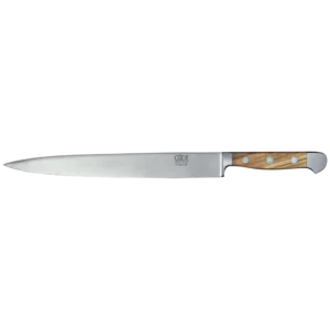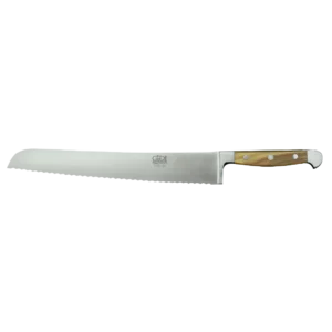 Ideal für Brot, Brötchen und Baguettes, meistert dieses Messer auch das Schneiden von Braten, Kürbis, Melonen und anderen großen Lebensmitteln mit Leichtigkeit. Der ergonomisch gestaltete Griff aus sorgfältig ausgewähltem, altem Olivenholz sorgt für einen komfortablen Halt und liegt perfekt in der Hand.