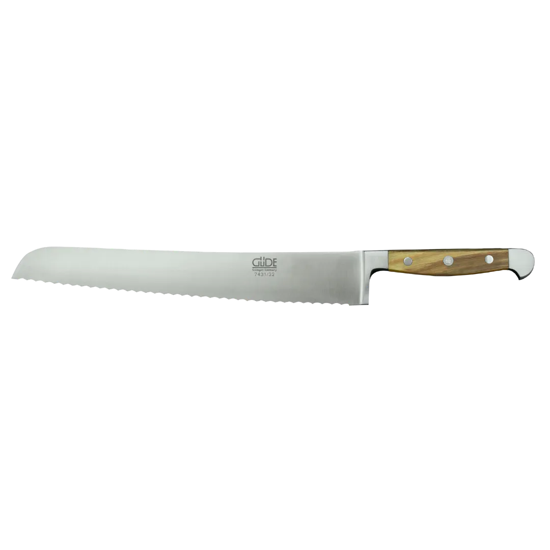 Entdecke das Alpha Olive Brotmesser von Güde, ein wahres Meisterwerk mit seiner beeindruckenden 32 cm langen, handgeschmiedeten Klinge. Die speziell gestaltete gezahnte Schneide mit spitzen Zähnen erhöht die Schneidfähigkeit und die Kantenhaltung, wodurch du sowohl weiches als auch hartes Brot mühelos schneiden kannst.