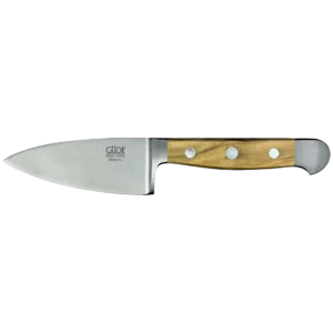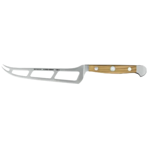 Erlebe das Alpha Olive Käsemesser 15cm von Güde, das ideale Werkzeug für alle Käseliebhaber, die Wert auf Qualität und Funktionalität legen. Die raffinierte Klinge mit speziellen Löchern sorgt dafür, dass weicher Käse nicht kleben bleibt, sodass du mühelos perfekte Scheiben schneiden kannst.