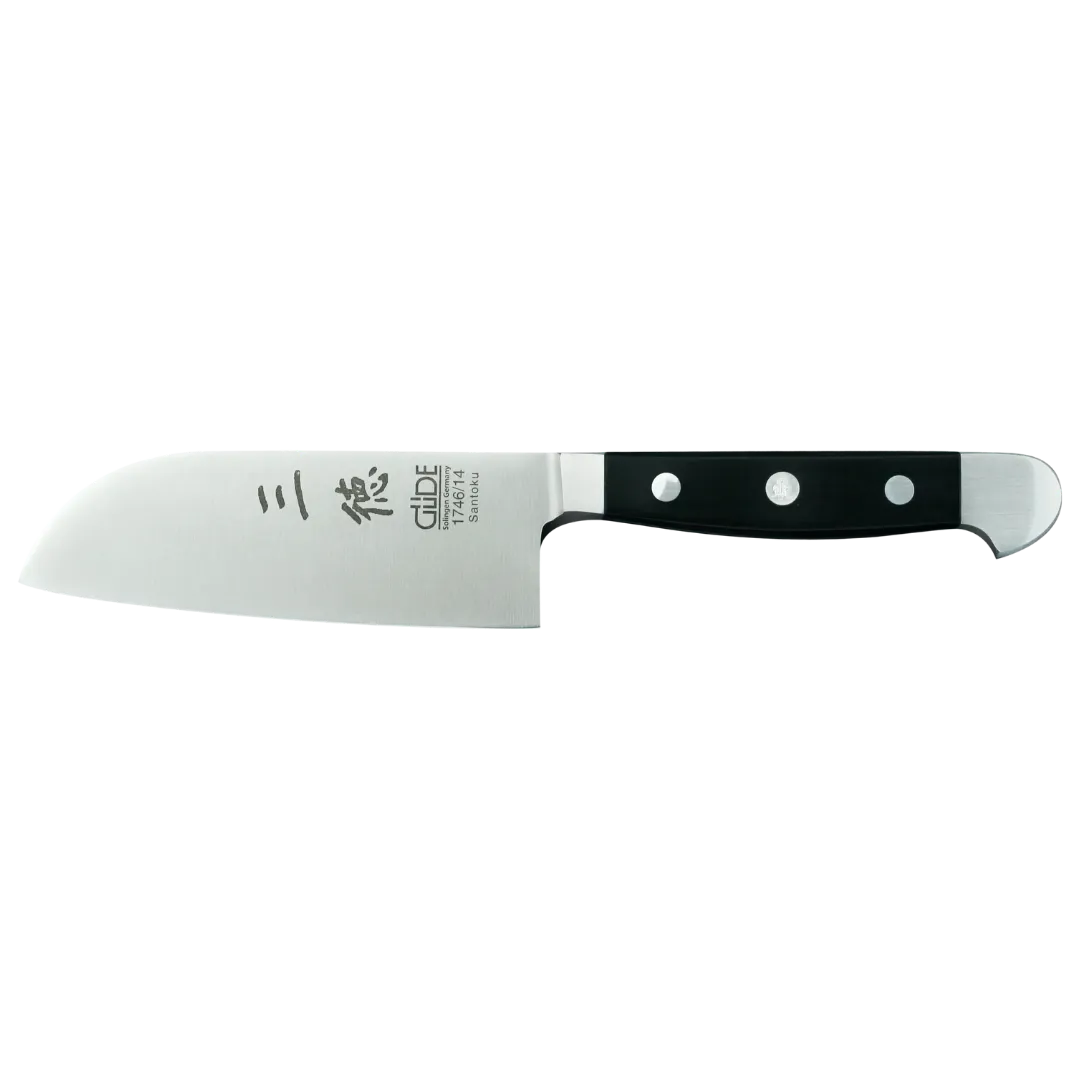Entdecke das Güde Santoku Kochmesser 14 cm aus der Alpha-Serie – dein unverzichtbarer Küchenhelfer für präzise Schneidarbeiten! Mit seiner handgeschmiedeten Klinge aus Chrom-Vanadium-Molybdän Stahl vereint dieses Messer Tradition und modernste Technik. Die scharfe, eisgehärtete Klinge durchdringt mühelos Fleisch, Fisch und Gemüse und sorgt für perfekte Schnittqualität. Der ergonomisch gestaltete Griff aus hochwertigem Hostaform-Kunststoff liegt angenehm in der Hand und ermöglicht dir präzises Arbeiten ohne Ermüdung. Mit einem Klingenmaß von 14 cm ist es das ideale Werkzeug für kreative Kochabenteuer.