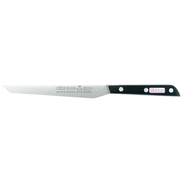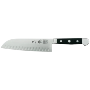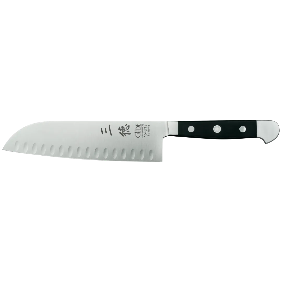 Entdecke das Güde Santoku Kulle 18 cm aus der Alpha-Serie, ein wahres Multitalent in deiner Küche. Mit seiner typisch japanischen Klingenform und dem speziellen Kullenschliff ist dieses Messer ideal für präzise Schneidarbeiten.