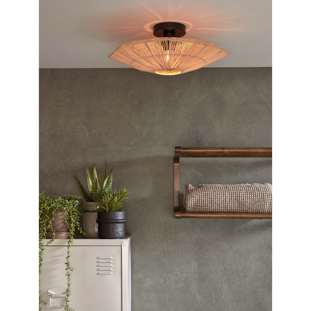 Hol Dir natürliche Wärme in Dein Zuhause mit der GOOD&MOJO Deckenlampe Panama octogon S – einem stilvollen und nachhaltigen Designstück mit einer flachen Höhe von nur 5 cm, perfekt für Räume mit niedrigen Decken. Die Lampe ist handgefertigt aus umweltfreundlichem Bast und in drei wunderschönen Farben erhältlich: Braun, Grau und Natur. Ihre achteckige Form und die natürliche Textur bringen eine ruhige, erdige Atmosphäre in Dein Zuhause und passen ideal zu modernen oder Boho-Interieurs.