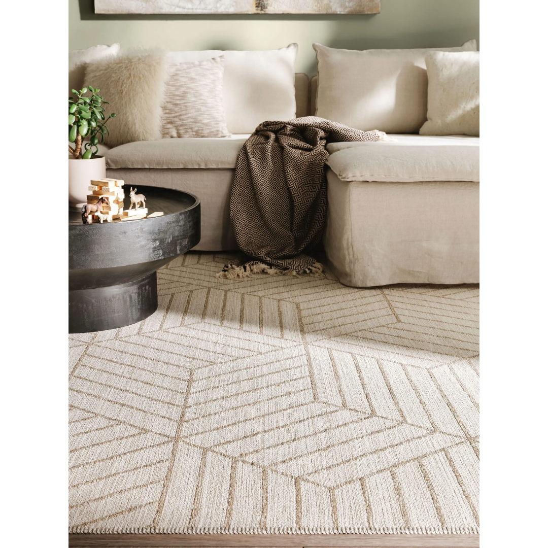Hol dir ruhige, moderne Eleganz in dein Zuhause mit dem Benuta Flachgewebeteppich Elena in Cream und Beige. Das geometrische Streifenmuster sorgt fรผr einen dezenten Hingucker, wรคhrend die Kombination aus natรผrlicher Jute und recyceltem PET-Polyester den Teppich nachhaltig und funktional macht. Erhรคltlich in vier Grรถรen (120 x 170 cm, 160 x 230 cm, 200 x 290 cm, 240 x 340 cm) passt Elena perfekt in Kรผche, Esszimmer oder Wohnzimmer.