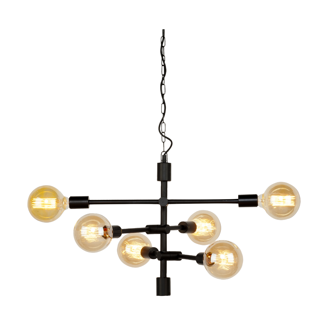 Die Leuchte ist mit E27-Leuchtmitteln kompatibel und dimmbar, sodass Du jederzeit die passende Lichtstimmung erzeugen kannst. Das matte Schwarz passt sich mühelos verschiedenen Einrichtungsstilen an, während das schwarze Textilkabel einen weichen Kontrast zur klaren Linienführung bietet.