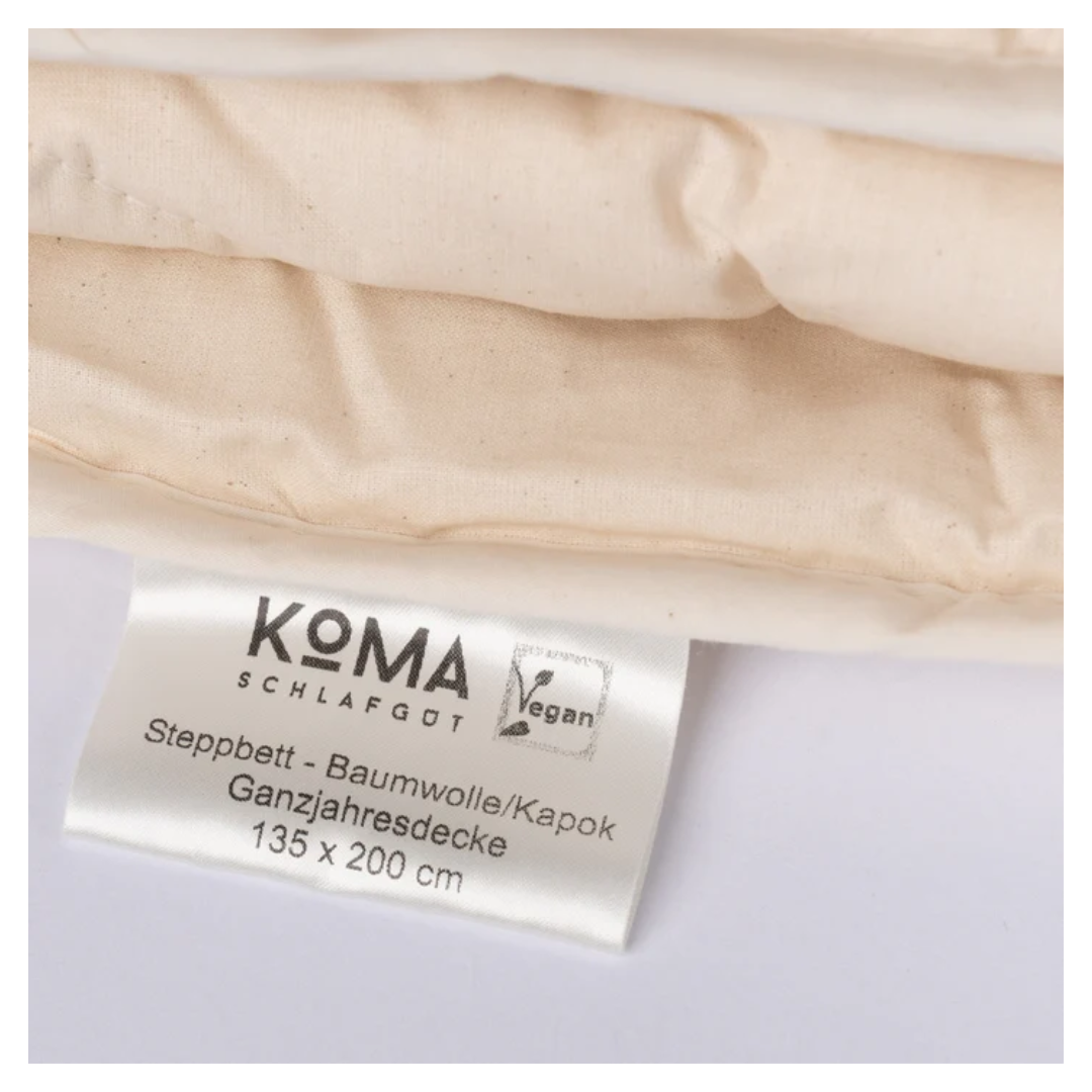 Entdecke ganzjährigen Komfort mit der KOMA schlafgut Kapok Bio Ganzjahresbettdecke. Gefüllt mit luftigen, leichten Kapokfasern, bietet diese Decke außergewöhnliche Vielseitigkeit und kuscheliges Wohlbefinden das ganze Jahr über. Kapok, gewonnen aus den Fruchtkapseln des tropischen Wollbaums, ist von Natur aus resistent gegen Motten und Milben – ideal für Allergiker.