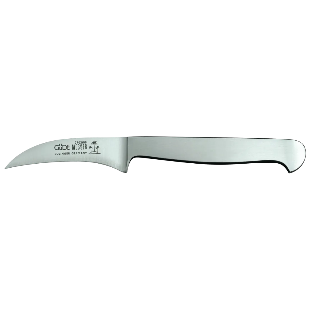 Entdecke die Präzision und Eleganz des Güde Kappa Schälmessers 6cm, ein Meisterwerk unter den Küchenmessern. Handgefertigt aus einem einzigen Stück Chrom-Vanadium-Molybdän Messerstahl, verkörpert dieses Schälmesser deutsche Ingenieurskunst in Perfektion. Die gebogene Klinge gleitet mühelos um Obst und Gemüse, für ein effizientes Schälen bei jedem Schnitt.