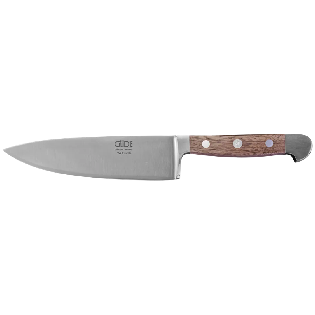 Das Güde Kochmesser verfügt über einen wunderschön gestalteten Griff aus amerikanischem Walnuss-Holz, bekannt für seine beeindruckende Maserung und komfortablen Halt. Das ergonomische Design, mit einer Grifflänge von 11 cm und einer Gesamtlänge von 28,8 cm, sorgt für ein sicheres und ausgewogenes Gefühl. Edelstahlnieten und eine Aluminium-Palmniete tragen zum einzigartigen Stil bei. Ausgezeichnet für seine Handwerkskunst, sollte dieses Messer von Hand gewaschen werden, um das Holz zu schonen und Schäden zu vermeiden. Mit dem Kochmesser 16 cm Alpha Walnuss bringst du sowohl Eleganz als auch überlegene Funktionalität in deine Küche.