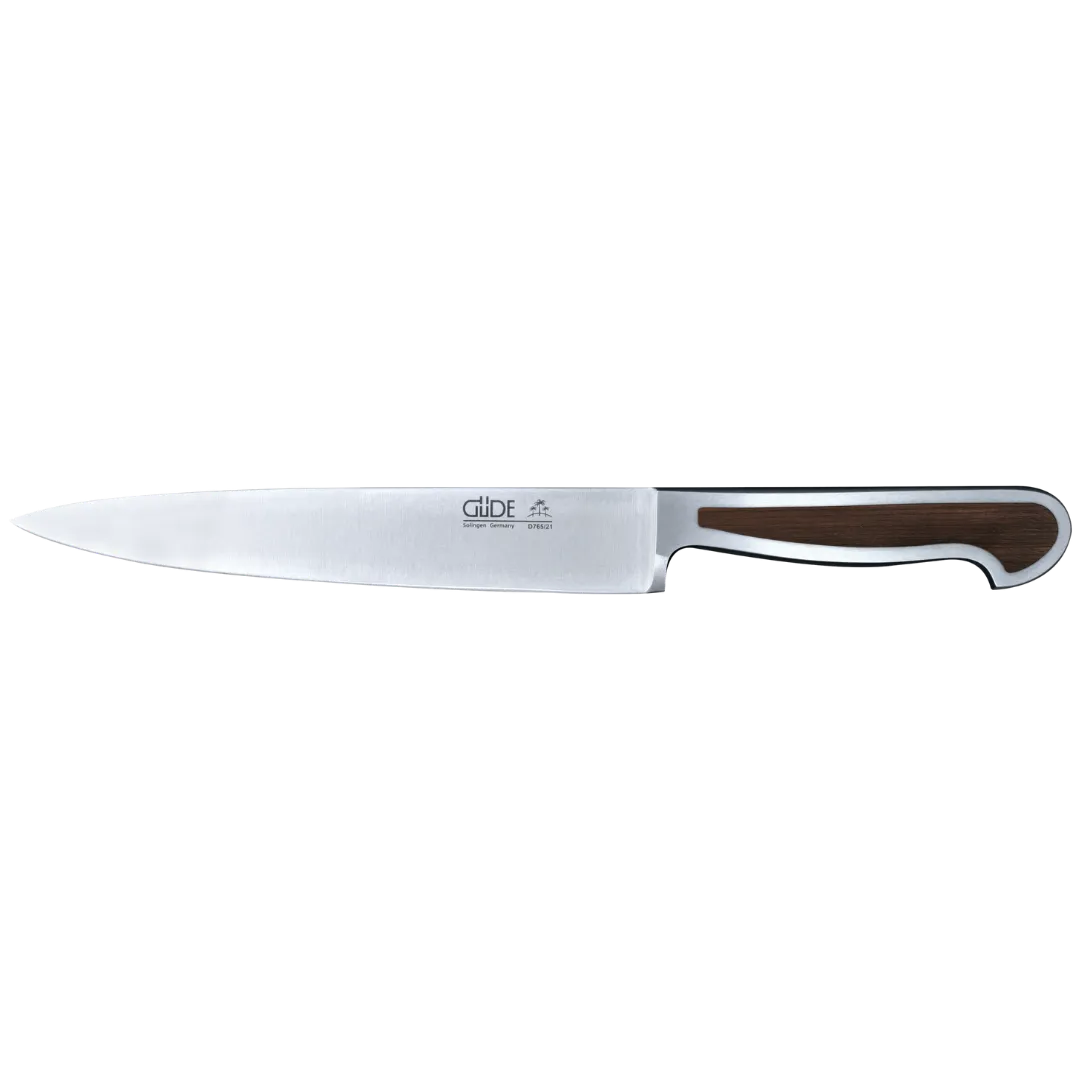 Erlebe ultimative Präzision und Vielseitigkeit mit dem Güde Schinkenmesser 21 cm Delta Grenadill. Dieses Schinkenmesser ist für außergewöhnliche Leistung konzipiert und verfügt über eine 21 cm lange, spitz zulaufende Klinge, die mühelos durch Fleisch und andere Zutaten gleitet. Die handgeschmiedete Klinge aus hochwertigem Chrom-Vanadium-Molybdän-Stahl ist rostfrei, eisgehärtet und sorgfältig handgeschärft, um unvergleichliche Schärfe und Haltbarkeit zu gewährleisten. Mit einer Klingendicke von 2,3 mm und einer Höhe von 3,1 cm sorgt es für glatte, präzise Schnitte und ist ein unverzichtbares Werkzeug für den Alltag und besondere Anlässe.