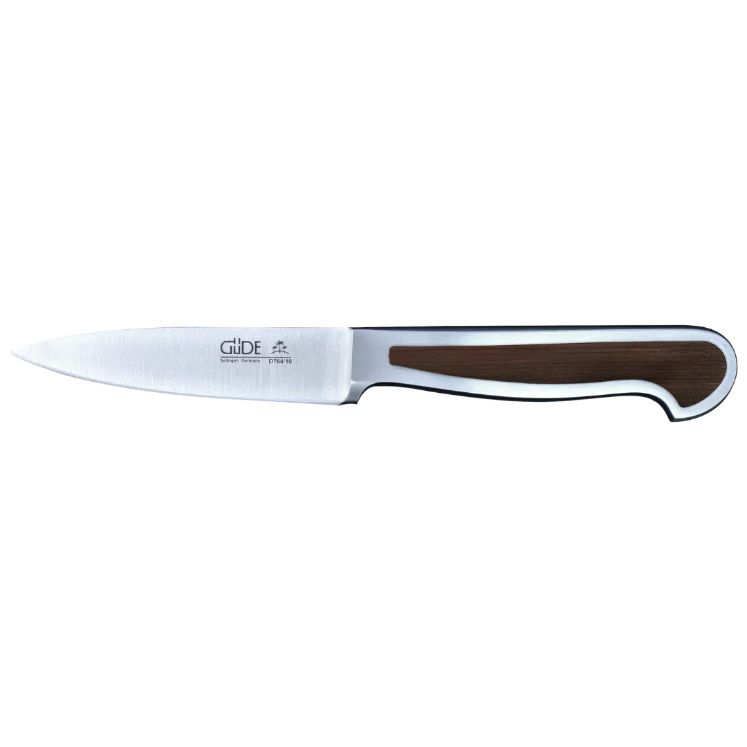 Das Güde Spickmesser überzeugt nicht nur durch seine Leistung, sondern auch durch seine Ästhetik und seinen Komfort. Der Griff aus edlem, schwarz-braun meliertem Grenadill-Holz verleiht dem Messer ein einzigartiges und elegantes Aussehen. Das leicht erhöhte Griffdesign verbessert die Handhabung und macht es einfach, präzise Arbeiten zu erledigen. Mit einem Gewicht von nur 178 Gramm und einer Gesamtlänge von 19,9 cm bietet das Messer ein ausgewogenes Gefühl. Als Gewinner des “Interior Innovation Award 2011” verbindet das Güde Spickmesser Delta Grenadill Funktionalität mit anspruchsvollem Design und ist ein unverzichtbares Werkzeug für jede Küche.