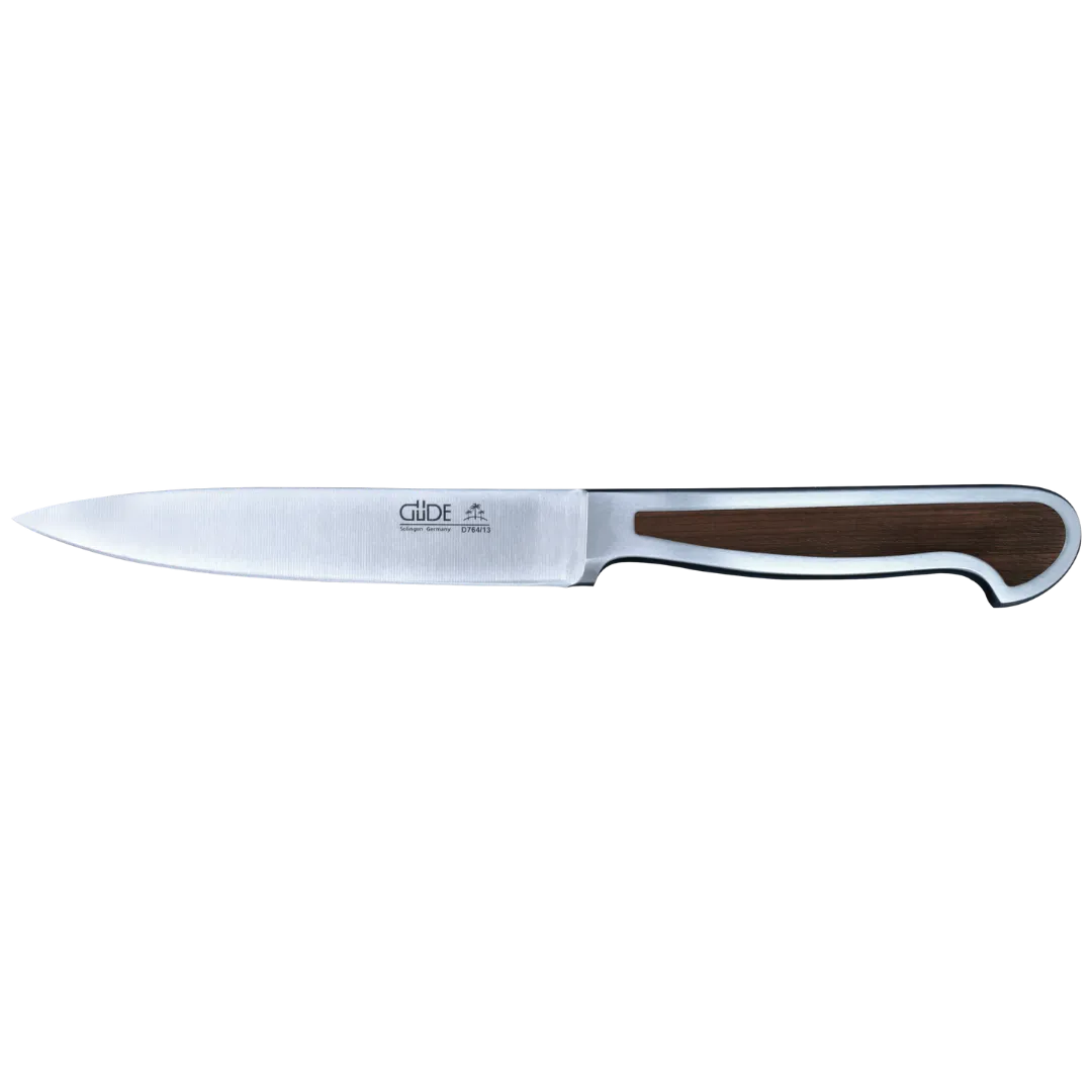 Das Güde Spickmesser verbindet Funktionalität mit Eleganz. Der Griff aus luxuriösem, schwarz-braun meliertem Grenadill-Holz hat ein einzigartiges, leicht erhöhtes Design für verbesserten Komfort und Halt. Mit einem Gewicht von 183 Gramm und einer Gesamtlänge von 23,3 cm bietet dieses Messer ein ausgewogenes Gefühl und Präzision. Ausgezeichnet mit dem “Interior Innovation Award 2011”, ist das Güde Spickmesser Delta Grenadill ein Zeugnis für exquisite Handwerkskunst und innovatives Design, perfekt, um dein Kocherlebnis zu bereichern.