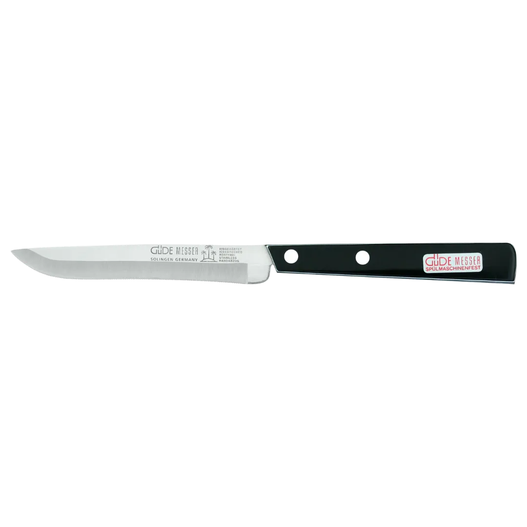 Entdecke die perfekte Kombination aus Präzision und Vielseitigkeit mit dem Güde Universalmesser 11 cm. Die Klinge aus rostfreiem Spezialmesserstahl mit feiner Zahnung und beidseitigem Hohlschliff sorgt für extreme Schärfe und müheloses Schneiden. Ob empfindliches Obst oder knuspriges Brot – die 11 cm lange Klinge gleitet durch jedes Schnittgut und macht das Universalmesser zum unverzichtbaren Küchenhelfer.